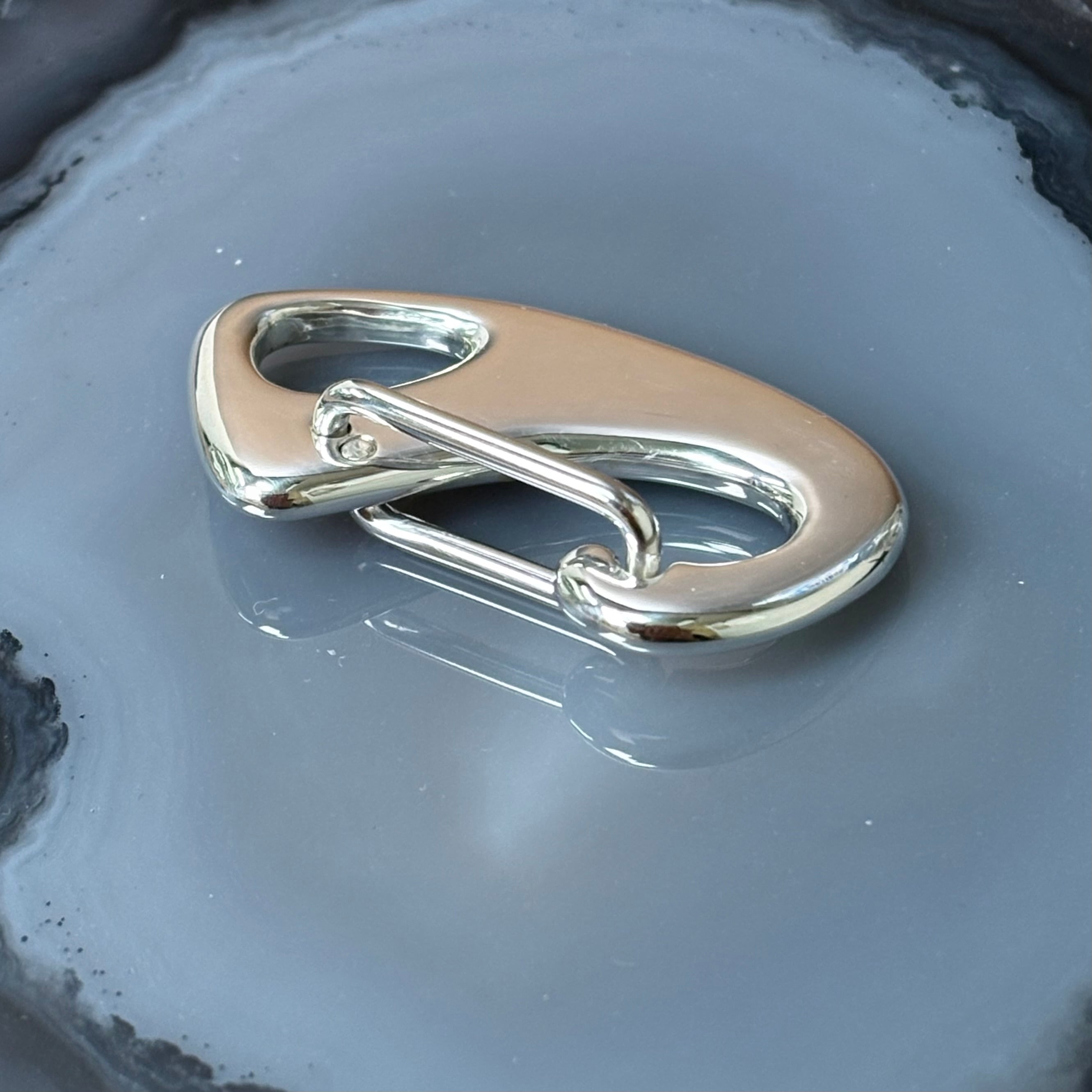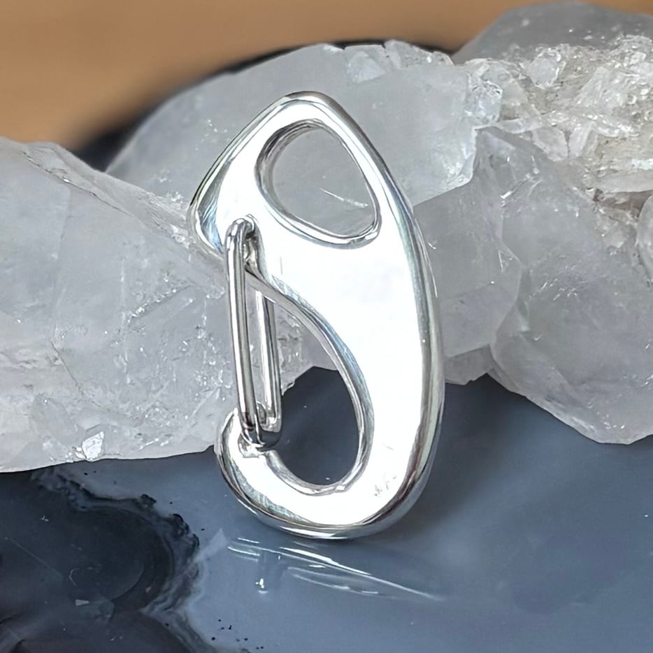 この一点物のシルバーカラビナは、あなただけの特別なアイテムです。滑らかなシルバーの光沢は、シンプルでありながら存在感があり、どんなシーンでも活躍します。機能性だけでなく、ファッションアイテムとしても十分に楽しめる商品です。