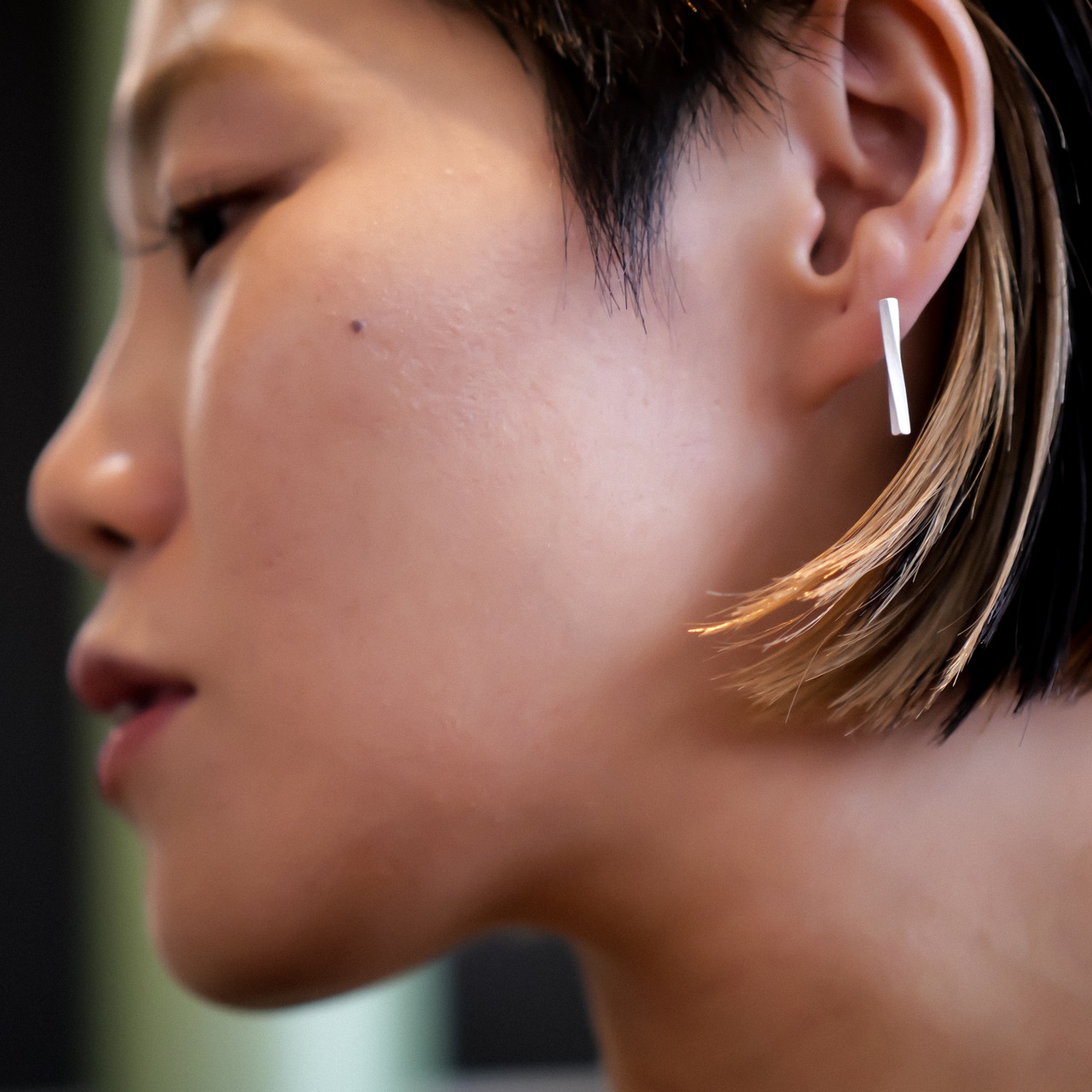 ミニマルでスタリッシュなデザインの片耳ピアス